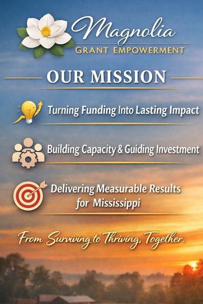 A Mississippi where nonprofits are resilient, public safety agencies are equipped, community organizations are empowered, rural towns are positioned for growth, and funding leads to real outcomes — not just awards.